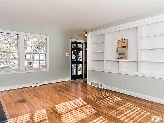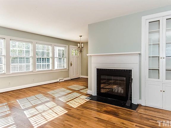Adorable cottage on quiet street. High wooden privacy fence in backyard, perfect for pets or small children. Huge deck with accent lighting perfect for entertaining or just relaxing. Hardwoods throughout living areas and kitchen and tile bath. Living room features: masonry fireplace, glass doored cabinet and a wall of built in bookshelves on the opposite side of the room. Ceiling fans and overhead lighting in both bedrooms. Washer, dryer, and refrigerator convey. SO very charming!