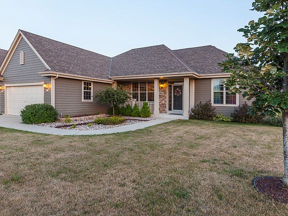 Great 3 bedroom ranch home in East Troy's Lake Bluff! Plenty of curb appeal with the covered front entrance and partial stone exterior. Open concept interior features kitchen with breakfast bar, center island, and SS appliances included. Additional wine cooler. Great room has gas fireplace. Split bedroom design offers huge master suite with dual vanity in master bath. Closet organizers in all bedroom closets. Large main floor laundry room. Lower is plumbed for future bath. Beautiful back yard patio area!