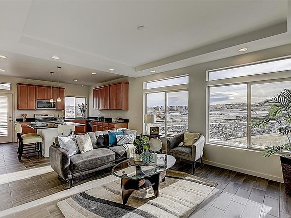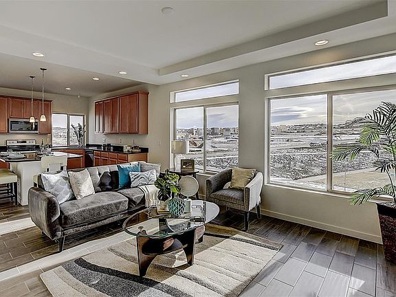 Enjoy Fall in your new home! Welcome to the beautifully designed Tyler floorplan! The included pantry and center island provide ample use of space and storage in the open kitchen. The kitchen hosts a large Concrete Gray Quartz eat in island, stainless steel appliances, Maple Honey cabinetry and Elblem Gray 7x20 wood plank porcelain tile floors throughout the main floor and foyer. The master suite is located conveniently on the main floor while the secondary bedroom and flex space are downstairs. Enjoy the convenience of front yard landscaping maintenance, maintenance free exteriors and cedar wood fencing around the backyard! Call today and come see why we are the builder of choice for Colorado families!