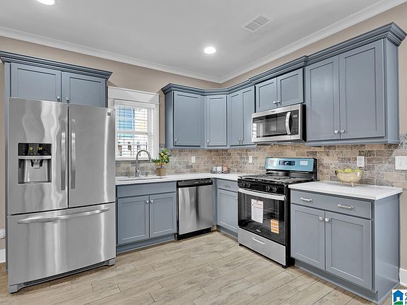 Well-maintained 2 bedroom, 2 bath home in Irondale featuring an open-concept layout with wood-look tile flooring and spacious living and dining areas accented by tray ceilings and crown molding. The kitchen offers shaker-style cabinetry, quartz countertops, stone tile backsplash, and stainless-steel appliances. The primary suite includes a tray ceiling, ample closet space, and a private en-suite bath. A second bedroom and full bath provide flexibility for guests, home office, or additional living space. Additional features include an attached two-car garage, freshly Painted throughout, and a low-maintenance design. Washer and dryer remain. Conveniently located near shopping, dining, and major interstates with easy access to downtown Birmingham. Schedule your showing today.