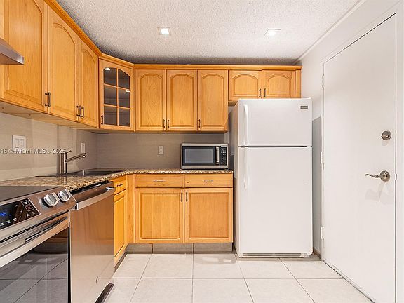Beautifully remodeled 1BR/1.5BA condo at Carlton Bay in North Miami Beach! Bright and spacious layout with tile flooring and custom lighting throughout. Updated kitchen with stainless steel appliances, granite counters and wood cabinets. Ample master bedroom with His & Her closets. Renovated master bath with custom wood vanity and glass encased bathtub/shower. Separate guest bathroom with washed wood vanity and quartz countertop. Oversized and screened in balcony has room for furniture and is perfect for relaxing. Water and 1 assigned parking space included in the rent. 1 year Lease only. Carlton Bay Condo offers its residents a secured lobby, private pool and plenty of guest parking. Excellent location near the beach, Oleta Park, restaurants, shops, supermarkets and so much more.