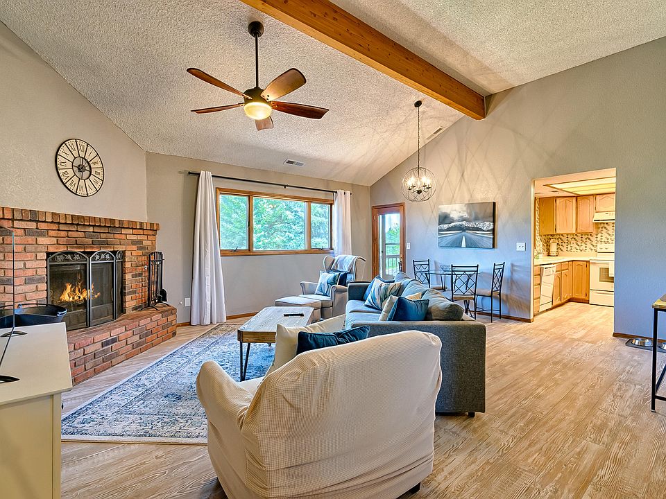 Sharp, clean, successful short-term rental just remodeled! NEW: flooring, paint, light & plumbing fixtures, door hardware, stove, and additional fans. Almost all furniture & furnishings convey! The high vaulted ceilings and brick walls allows for an incredibly relaxed living experience, and the Wood accents makes this your perfect mountain getaway. Recharge outside on the deck with views of Mount Elden. Wood-burning fireplace will set the mood in winter and the Master deck is perfect for summer privacy w/ lots of trees around. Membership to the Continental Country Club and 'Bear Paw Recreation Center' for fun & convenience--go swim, play golf, mini-golf, basketball, tennis, etc. and even visit the Fitness Center or yummy Oakmont restaurant. You'll love what this condo gives you!!!