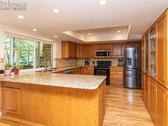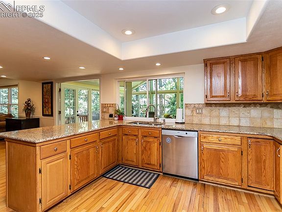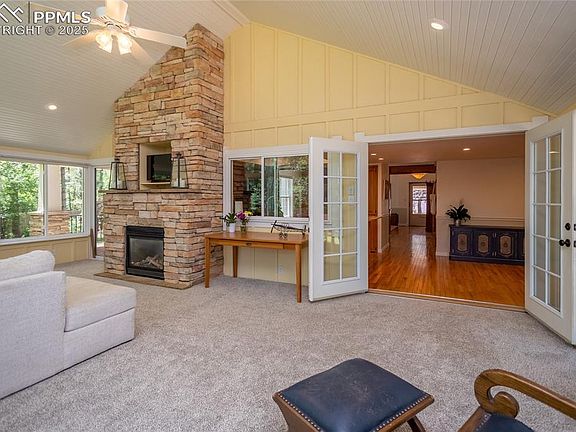 Welcome to this beautifully maintained home in a well-established neighborhood, located in the #1-ranked school district in Colorado—D-12! Enjoy easy access to a walking path that leads directly to Broadmoor Elementary. From the moment you enter, you’re greeted by vaulted ceilings, large windows that fill the formal living and dining rooms with natural light and beautiful woodwork. This home is perfect for entertaining. The stunning kitchen features granite countertops, stainless steel appliances, and hardwood floors, and flows into the cozy family room with fireplace and a bright sunroom. The sunroom is hub of the home and one of the many highlights of this home. The sunroom includes a stone fireplace, ceiling fan, and access to both a covered patio and a peaceful garden. The sunroom has wonderful windows that open for a nice summer breeze of Colorado fresh air. Upstairs, the spacious primary suite offers three closets including a walk-in with washer and dryer, an updated en-suite bath. Three additional bedrooms, a full bath, and a loft with built-in bookcases. This space is perfect for a home office, crafting or just relaxing and enjoying the view. The finished lower level includes a 5th bedroom, a 3/4 updated bathroom, large rec room with fireplace, and finished storage. The beautifully landscaped yard features flower gardens, mature trees, a creek bed, sitting areas, a covered patio, a hidden garden, fire pit area and the hot tub make this yard your own private retreat. Walking distance to the five star world famous Broadmoor Hotel. Close to schools, parks, trails, shopping, Fort Carson, Downtown and several new great restaurants. This one-of-a-kind home offers comfort, charm, and an unbeatable location.