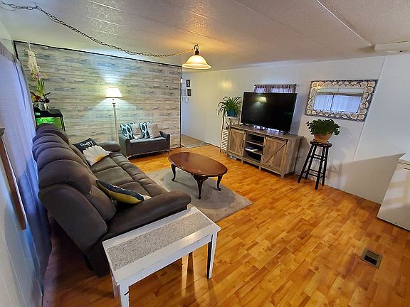 This mobile home is a 3 bedroom 1 bathroom home. It has a large kitchen with plenty of storage. All appliances seen in the photos are a part of the asking price and are in great working condition (this does not include the washer and dryer). The position of the living room allows for and open layout that combines the kitchen and living areas giving a more open and welcome feeling to the home. The heater was replaced about 5 years ago and the water heater is around 7 years old. The heating unit is gas powered and has the availability to add a centralized cooling system. Attached to the home is a high powered swamp cooler that is more than sufficient to keep the home cool in the summer. Along with the home is a large wooden shed and smaller metal one. The lot rent is $400 per month, and water and sewage are included. There is no HOA fee. The location of the mobile home is positioned inside of a community that requires all tenants to own their homes and pass a background check prior to entry making it a much safer location than other neighborhoods. Our lot has a large sized yard and is located in the lower level of the community. The neighbors are all friendly and compassionate which makes for an overall welcome feeling both inside and out of the home. The large windows allow for a flood of natural light all throughout the day, which also helps cut down on energy costs. The windows were replaced before we moved in in 2021 and all are functioning. The bathroom has a vent fan as well as a small window which allows for plenty of ventilation. There has been no smoking in the home since we have lived here, and pets are welcomed. The yard is completely closed off which allows pets to roam freely. Although the home is on the older side, it has been well maintained. We are open to negotiation. If you have any further questions, please feel free to contact the owners Nick at (307) 250-9140 or Mariah at (307) 250-7654. You may message both of these numbers at any time of the day.