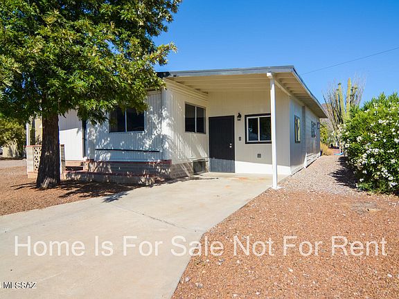 Beautifully remodeled Mobile home. 55+ Community. Located in a scenic South Tucson Location. Rich wood look LVP flooring. Remodeled kitchen with SS appliances. New interior and exterior paint. Updated bathrooms. Storage shed. Covered side porch. The amenities include swimming pools, work out room, pickleball court, 18 hole executive golf course, library, radio station and you own the land! This home shows beautifully.