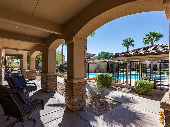 You'll love this beautiful 2-story townhome just steps from the community pool & spa offering 2 bedrooms & 2.5 baths in 1408 SqFt. Great room floor plan with tile floors throughout living areas & baths, carpet in bedrooms, & plantation shutters throughout. The kitchen is nicely finished with 42'' maple cabinetry, granite countertops, glass tile backsplash, stainless appliances, pantry & breakfast bar. Bedrooms are upstairs & both have en-suite baths with granite countertops & walk-in closets. The primary master also has a private balcony! Other features include an attached 2 car garage with epoxy floors, front security door, main floor laundry & much more! Great location just minutes from the 202 & 60. See today!
