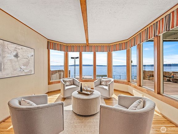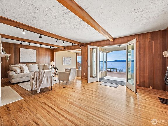 Welcome to this waterfront retreat in Three Tree Point! It's like living on a houseboat, only better. 40' of bulkhead beachfront with stunning views out to Puget Sound, top of Mt. Rainier and the Olympic Mountains! Entertain on the massive patio and deck combination with steps down to your own beach. Wide open entry with French doors bringing the outside in. Inviting formal living room with gas fireplace and adjacent sunroom, offer separate living areas with plenty of windows to take in the views. Drive-up 3-car garage with finished rooms above for home office, shop, exercise studio and more! Would make and ideal ADU/guest apartment (currently not plumbed for water/sewer). Enjoy year-round comfort with central A/C and gen. ready.
