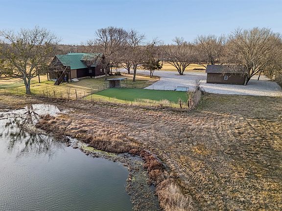 Nestled on a heavily wooded 39.449-acre lot in Wylie, this charming log cabin retreat offers the perfect blend of privacy, character & endless possibilities. An elongated driveway sets the tone as it leads you through the trees to the home, creating a true escape from the everyday while still offering valuable frontage and accessibility for future business or development opportunities. A detached garage or workshop w-a Benpak car lift, built-ins & electricity adds flexibility for hobbies, storage or projects. The remodeled cabin welcomes you w-a huge Texas-sized front porch, ideal for relaxing & taking in the peaceful surroundings. Inside, a grand entry showcases the open floor plan featuring 3 spacious bedrooms + 2 beautifully updated bathrooms. The expansive living room is perfect for unwinding, while the generous dining room easily accommodates a large table & flows seamlessly into the kitchen. Kitchen is well-appointed w-a gas cooktop + oven, dishwasher, granite countertops that extend to the backsplash, an island w-seating + a raised breakfast bar. Just off the kitchen is a massive multipurpose space w-hardwood floors, custom built-ins & planked ceilings, perfect as a second dining area, game room, or bunk-style retreat complete w-2 built-in Murphy beds. A spiral staircase leads to a loft area & opens to a second-story deck, offering elevated views of the property, while walls of windows drench the space in natural light & showcase scenic views of the land. Outdoors, enjoy a large fully stocked pond, an outdoor putting green, open pasture areas, and heavily wooded sections with ample room for expansion, whether you envision additional homes, an event venue, small business operation, or your dream outdoor oasis. Ideally located just minutes from Highway 78 and a short drive to Lake Ray Hubbard, this rare 39.449-acre property offers incredible potential as a private residence, weekend getaway, income-producing Airbnb, or future commercial investment opportunity.