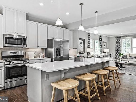 Available immediately is the Wexford F model home in the sought after Shaws Discovery Community, a gated community developed by Ryan Homes. This end of row townhome provides that extra space you are looking for with approximately 2234 square feet -- 3 bedrooms, 2.2 baths and a 2 car garage. It is surrounded on 2 sides by forest conservation and provides a serene and tranquil setting. This lovely home has many upgrades including a large gourmet kitchen with upgraded cabinets with crown molding, under cabinet lighting, double bowl sink, quartz countertops, tile backsplash and stainless steel appliances. Open the rear door just past the large center island to a 22'x10' Trex deck. The open living room features crown molding and is filled with abundant natural sunlight thanks to large windows on two walls. The dining room, also vey bright, has room for a large table and complementary furnishings. A warm and beautiful oak staircase with metal balusters leads to an owner's suite punctuated by a tray ceiling and LED recessed lighting. Two additional bedrooms, an additional bathroom with ceramic surround and a laundry room complete the second floor. The lower level has access to a 2-car garage with automatic opener, and a walk-out family room that backs to a forest conservation which is absolutely stunning. The spacious side-yard also backs to the forest conservation and was beautifully landscaped. The Shaws Discovery Community boasts great outdoor living with trails, a pier, fire pits and an incredible natural setting. It is convenient to I-95 and 695 and great shopping at Canton Crossing and so many other locations. So much to see and enjoy. Schedule your showing today.