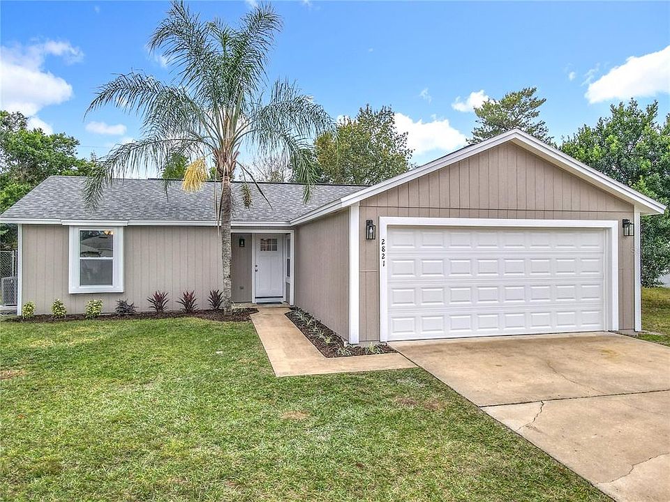 This is a must see! Fully renovated, beautiful 1,032 square foot home on a quarter acre lot in desirable Deltona location with 2 car garage. This 3 bedroom, 2 bathroom home has been fully remodeled and is in turn-key condition. Enjoy the spacious new kitchen with solid wood cabinets, modern hardware, new stainless steel appliances, new sink and faucet, built-in pantry, plenty of (quartz) counter space and large eat-in peninsula. The interior is freshly painted in neutral grey tones which compliment the beautiful wood-look flooring, new baseboards and new light fixtures throughout. The large family room, open concept kitchen, huge concrete rear patio and fenced, over-sized yard (.23 acres) make this house great for entertaining. Home boasts new roof, new electrical panel, new air conditioner, new pex plumbing throughout entire home, new water heater, new front door, new rear sliding door, new windows throughout, fresh paint inside and out, remodeled kitchen, new stainless steel appliances, remodeled bathrooms, new wood-look tile throughout, new baseboards, new interior six panel doors, new light fixtures throughout, new garage door and motor and over-sized garage (19x19). This home is centrally located right off Howland Boulevard in the heart of Deltona. No hoa. Come see for yourself.