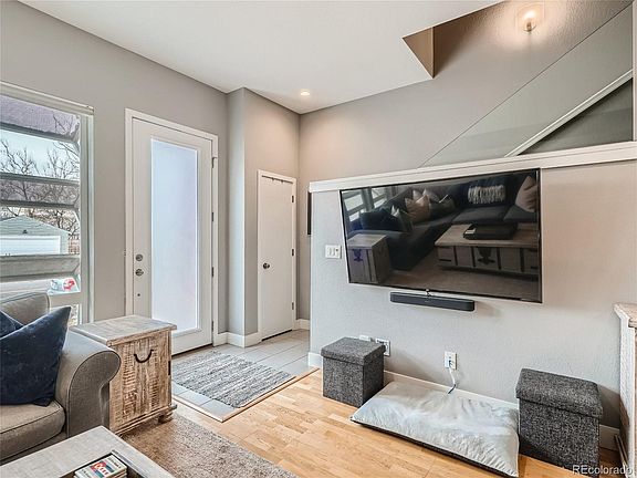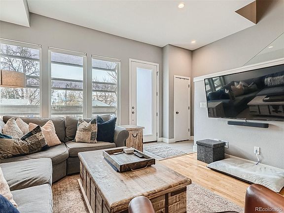 This luxurious dream townhome is nestled in the highly sought-after Chaffee Park neighborhood and boasts high-end finishes throughout. As you step inside, you'll be greeted by beautiful, hand-crafted engineered hardwood flooring that perfectly complements the modern and elegant tile entryway, creating an inviting and sophisticated atmosphere. The kitchen is a chef's dream, featuring upgraded sleek matte-finish appliances including custom cabinetry, designer lighting fixtures, and lavish quartz countertops. The deep pantry provides ample space for all your culinary needs. Upstairs boasts the primary and a large secondary bedroom with an ensuite bathroom. You'll be struck by the abundance of natural light pouring through the tall windows and vaulted ceiling that floods the primary and ample closet space. The primary bathroom is a luxurious en-suite, full bath with double vanity and a bright, airy solar tube in the bathroom. The fully finished basement is an entertainer's paradise and includes the relaxing spare bedroom. Smart home features include a Nest thermostat, Nest doorbell and Alexa-enabled cassetta light switches.