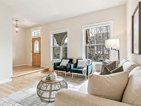 Discover timeless elegance in the heart of desirable Lower Highlands neighborhood with this exquisite 2-bedroom, 2.5-bathroom home spanning over 2,500 total finished square feet. As you step through the stained glass door into the high-ceiling foyer, you'll be instantly captivated by the sophisticated charm, showcased by custom flooring and elegant archways throughout. Inviting living room boasts a double-sided fireplace, creating a cozy ambiance for relaxation and entertaining. High ceilinged dining room feels private, yet it is open to both the kitchen and the living room. Spacious kitchen is adorned with gleaming maple flooring and offers an abundance of wood cabinetry, a practical pantry, and a separate dining nook, all overlooking the sweetly landscaped and fully fenced backyard. Classic staircase takes you to the second level, occupied by dual primary suites that offer comfort and privacy. The east-facing suite features a 5-piece ensuite bathroom, three closets, an intimate reading nook and a beautiful transom window with custom stained glass. French doors lead you to a balcony where you can savor morning coffee with sunrise views. Meanwhile, the west-facing suite is spacious and airy, complete with its ensuite bathroom and a walk-in closet. Finished basement is a versatile space, with abundant storage, a family room perfect for game days and movie nights, and a perfectly sized home office, with an egress window. Outside, gorgeously landscaped grounds are thoughtfully designed for the Colorado climate, with smart sprinklers ensuring lush greenery in both front and back yards. Additional features include a new roof with a 25-year transferable warranty and 12 fully paid solar panels, providing energy efficiency and cost savings. Spacious 2-car garage offers ample room for storage and a workbench, completing this oasis of tranquility in the heart of the dynamic and trendy LoHi neighborhood.