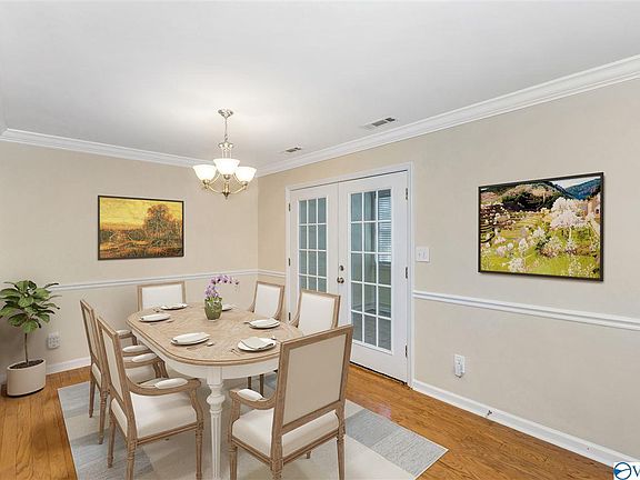 Great location and great condition. Fresh interior paint, and Features include hardwood flooring in family room and dining with chair rail, upgraded kitchen with recessed lighting, crown molding, hard surface counters and upgraded appliances. Tiled Sun room off the back patio. Updated baths with new counters and tile surround tubs. Privacy fenced backyard. Quick access to Redstone Arsenal Gate, and near SE HSV outdoor trails.