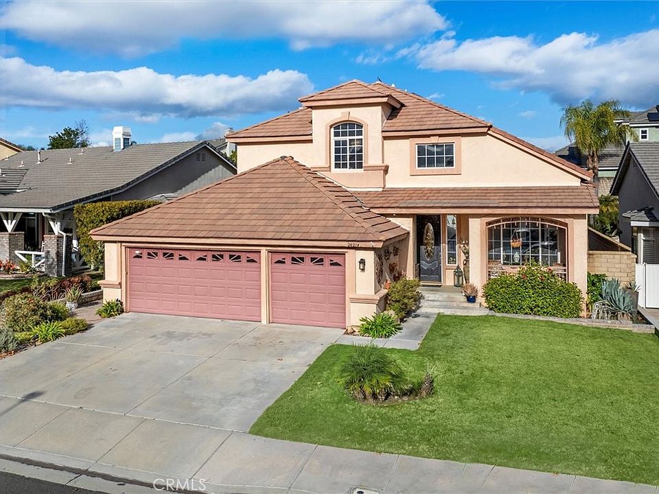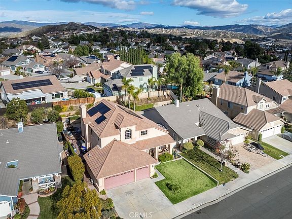 Don’t miss out on this beautiful Pool home! Desirable floor plan with 3 bedrooms and 2 bathrooms upstairs and an office/bedroom and full bathroom downstairs. Formal living room and formal dining room with high ceilings and large windows, spacious kitchen with center island, Quartz counter tops, upgraded cabinets, walk-in-pantry and custom-built bar overlooking the welcoming family room with a fireplace. This open floor plan offers views of the pool and back yard from every window and door from the back of the house. Bright, cheerful, and welcoming to all that come in you’ll absolutely love the amount of light and the peaceful atmosphere. Conveniently located downstairs is a bedroom/office and full bathroom. Upstairs the main bedroom with double doors and high ceilings connects to the main updated bathroom with double sinks, separate shower & tub and walk-in-closet. The two other upstairs bedrooms are connected by a pass-through bathroom with double sinks and separate tub/shower. This home also includes a double-sided staircase, built in bookshelves, surround sound, track lighting, does not have Mello Roos or HOA fees and a 3-car garage and Solar!