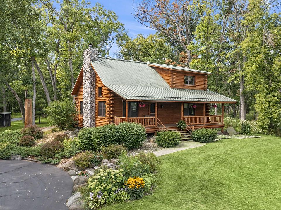 Northwoods retreat 1 hour from Milwaukee or Chicago! This property is DROP DEAD GORGEOUS! A2 zoning! 10+ acres of privacy & DREAM 72x104 outbuilding. Additional 6 acres available to the east could make this a 16 acre property w/endless possibilities! Zoned heated floor, commercial grade finishes, full kitchen w/granite counters, full bath, separate well, holding tank/utilities, 400amp service. Back STOCKED pond is 14ft deep, has beach for swimming & kayaking, pier for fishing. The entertainment & relaxation possibilities are endless! Winding drive past acres of lush grass & a front pond (could be horse pasture). Charm galore for the true log cabin home. Vaulted ceilings, open floor plan, a large loft primary is open to the lower. Finished English basement w/3rd bed & 2nd bath.