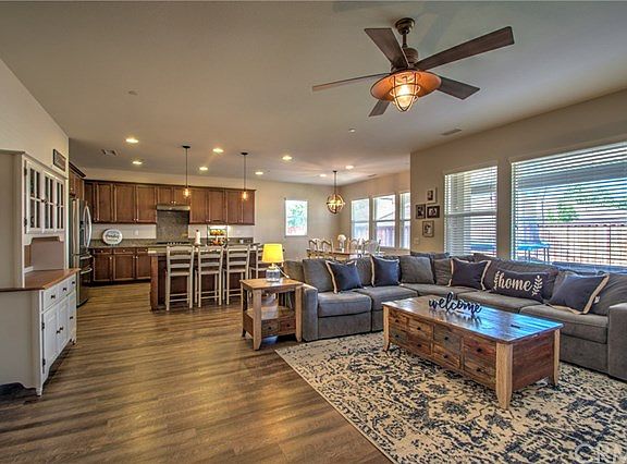 Beautiful single story home located on a cul-de-sac in the desirable Heritage Lakes community. Walk through the front door to find 9 ft ceilings and wide hallways that help create an open and airy flow. The kitchen opens into the family room and is the heart of this home. It offers granite counters, a large dine-in area, stainless steel appliances, a 5 burner stove, and a huge 4 chair island with more than enough surface area to prep to your hearts content. This home offers so many upgrades from the custom interior paint, ceiling fans, lighting, tall baseboards, and luxury vinyl plank flooring. You will appreciate the ease and convenience of the separate laundry room with a massive storage closet. Four bedrooms and a bonus room, that could be used as an office, den, or additional bedroom, provide so much space that you can just spread out. The extended front lounge area with sitting wall and covered backyard patio are perfect places to relax after a long day or to enjoy family and friends. The alumawood patio cover with ceiling fan extends the whole length of the house and provides shade on those warm summer days. Utilize the 3 car tandem garage. The community amenities can not be beat. Enjoy the Olympic sized pool, 25 acre lake with access for catch and release fishing and paddle boating, club house, walking and bike trails, and the splash park. In addition, 2 brand new community pools have recently been completed. This house is the perfect place for you to call home.