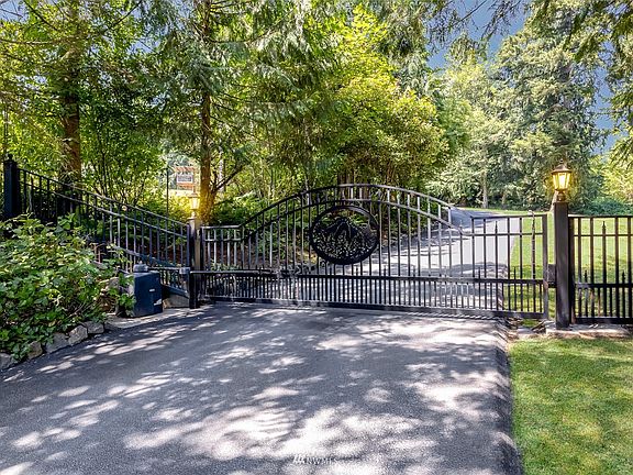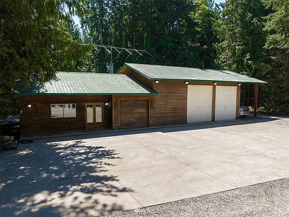 Rare find! Meticulously maintained home, shop, office & outbldgs on private 5 acre gated estate w/stunning Mt view from nearly every room! Your first turn off the gated drive leads to the magnificent fountain in front of the residence or continue straight back to the shop. Perfect separation for home business, yet still close w/adjoining driveway as well. This gorgeous property is a master gardeners dream w/park like grounds, mature landscaping & timber w/big, beautiful cedar trees throughout. Detached 81x28 mega shop boasts custom steel frame w/5,000 lb attached hoist + wood framed & insulated 8" walls, too much to list! There's even an office w/half bath that could potentially be an ADU. See features list & photo captions for more info!