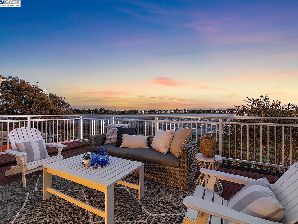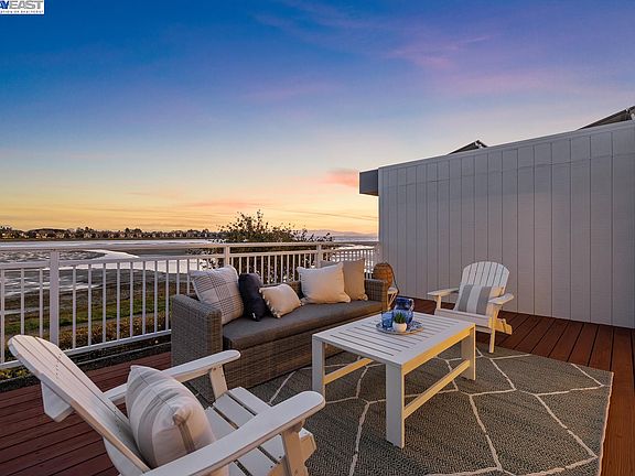 Dreaming of a waterfront home on Alameda’s shoreline where you can admire sensational views of San Francisco and the bay? Explore this nature lover’s paradise, filled with natural light illuminating a combination of neutral tones and refinished wood flooring. A brick facade fireplace warms the living room, while expansive glass sliders inspire idyllic indoor/outdoor entertaining. A chic chandelier lends a sophisticated glow as you host intimate dinners in the dining room. The stylish kitchen has a full set of appliances, ample cabinetry, and a pantry. A patterned backsplash accentuates granite countertops, and a garden window is great for growing fresh herbs. Enjoy casual fare in the cheerful breakfast nook. Wake up refreshed in your bedrooms, accommodated by a shared bath with a shower/tub combo. Topping them all, the generous primary suite showcases a private balcony and an ensuite with a walk-in closet, dual shower heads, and a separate vanity area. Your outdoor oasis is a picturesque setting to unwind and watch spectacular sunrises and sunsets. As a bonus, there are laundry hookups in the attached 2-car garage. Plus, you’re located along the Bay Trail near Roemer Bird Sanctuary and Crown Memorial State Beach. Come for a tour before it’s gone for good!