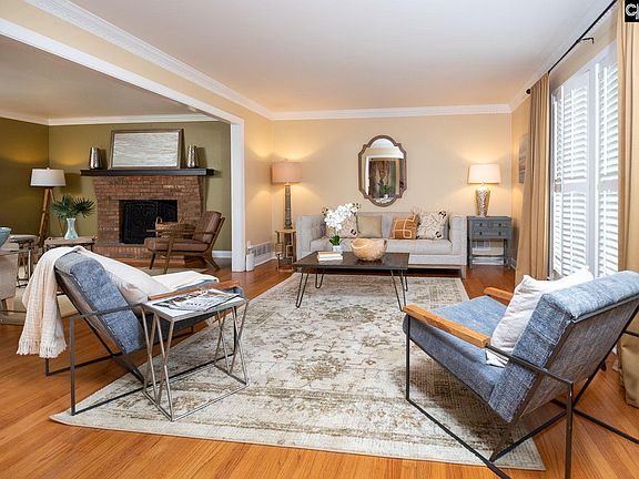 Elegant white columns make a statement on this all-brick 4BR/2.5BA home in one of Columbia's most sought-after neighborhoods of Forest Hills. With over 2700 square feet, the traditional floor plan has hardwoods throughout. Upon entering the house, you will find the formal dining room and formal living room. The eat-in kitchen has all the essential amenities with beautiful quartz countertops, tiled backsplash and bar-height seating. A half bathroom sits adjacent to the kitchen. Around the corner, you will find the informal living room which has access to the outdoor patio where you can enjoy a good read on a cool fall night. Up the stairs, a spacious master bedroom boasts his and her closets, a private bathroom that has a gorgeous tiled shower that has multiple shower heads. The other three bedrooms share a hallway bathroom. The detached garage sits at the back of the lot and has a finished room above for you to create an oasis away from the house, space for your home office, an exercise room or home workshop. The backyard is private and spacious for entertaining. This prime location gives you access to all of the Capital City's entertainment districts. This home is ready for you to move in, make it yours today!
