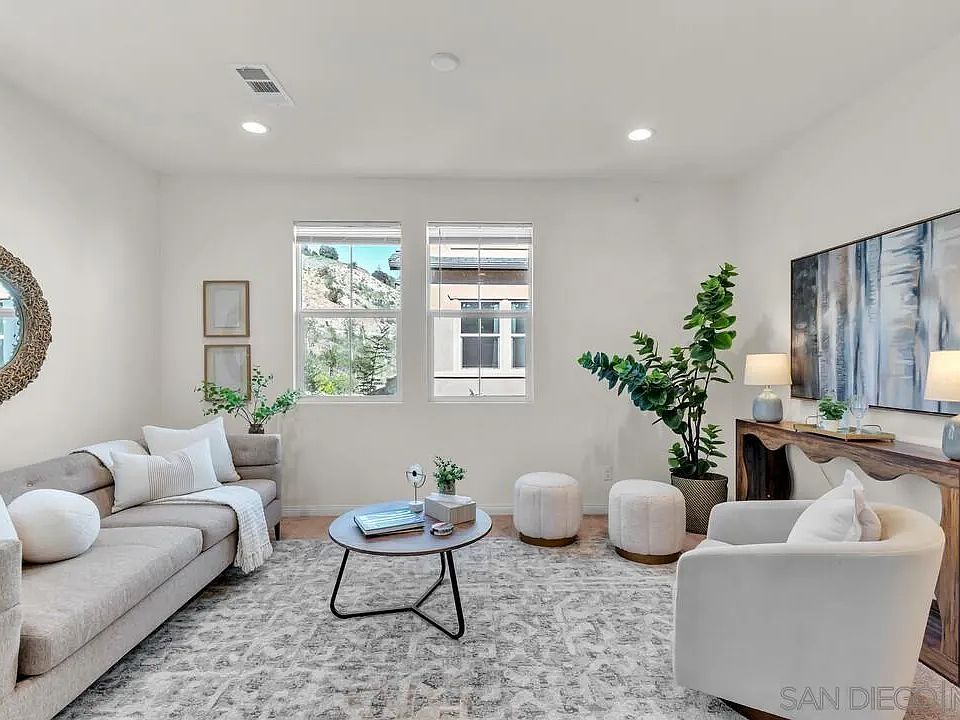 Rare opportunity to own a nearly new Aurora Plan 2 corner unit with a highly desirable three bedroom, three and a half bath layout and owned solar. This Energy Star–certified home is filled with thoughtful upgrades and offers a bright, open design ideal for modern living. The main living level features an open kitchen and living area with a private view balcony, perfect for relaxing or entertaining. A full bedroom and bathroom on this level make an ideal guest suite or flexible home office. The upgraded kitchen showcases quartz countertops, modern finishes, and stainless steel appliances. Upstairs, you’ll find spacious bedrooms with walk in closets, including a well-appointed primary suite. Laundry is conveniently located on the third level, and the home also includes a two-car garage wired for electric vehicle charging. Designed with energy efficiency in mind, this home features owned solar panels, an energy efficient water heater, smart thermostat, and water saving features throughout. Ideally located near Highways 94, 125, and 54 for easy commuting, with quick access to shopping, dining, and entertainment. Just 15 minutes to downtown San Diego and Sharp Grossmont Hospital, nine minutes to Cuyamaca College, and walkable to Monte Vista High School and Sweetwater County Park with trails, picnic areas, amphitheater, and tot lot. This home offers the perfect blend of modern design, energy efficiency, and a prime location. A rare corner unit opportunity you won’t want to miss. Broker and Broker Agents do not represent or guarantee the accuracy of the square footage, permitted or unpermitted space, bd/ba count, lot size/dimensions, schools, or other information concerning the conditions or features of the property. Buyer is advised to independently verify the accuracy of all information through personal inspection & with appropriate professionals to satisfy themselves.