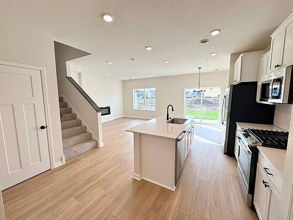 Take a look at this beautiful 3bd/2.5 bath townhome nearing completion in St. Michael. The open main floor starts at the spacious foyer, which leads into the galley style kitchen with pantry closet, slide-in gas range, upgraded dishwasher, tile backsplash, and quartz countertops. The family room includes modern electric fireplace. You'll find a spacious owner's suite on the second floor with large private en-suite bath and walk-in closet. Adjacent loft is a great secondary living space along with two additional bedrooms finish off the second floor.
