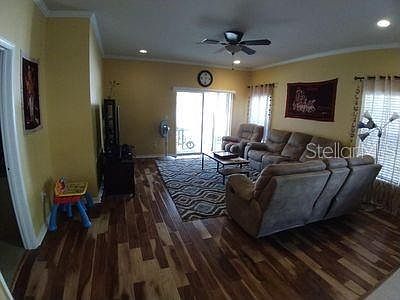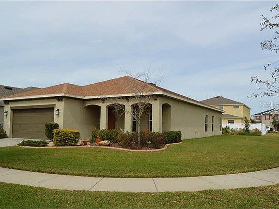 Wonderful 3-bedroom 2 bath single family home, gated community, huge community pool, park and playground. Many events slated for all residence for optional fun and enjoyment. Close to Veterans expressway. This home has a 2-car garage, screen lanai and very open and spacious floor plan through out, washer, dryer and all stainless-steel appliances in kitchen, hardwood floors in main area. An attractive interior and corner lot exterior. 1-year lease. Split plan flow through and fenced back yard. Pets welcome, no restricted breeds.