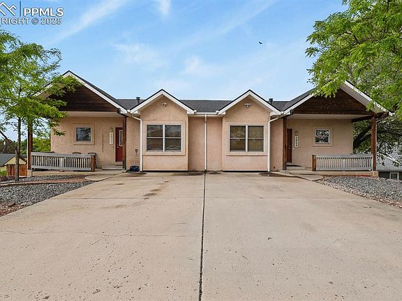 This well-maintained stucco duplex with strong income potential & beautiful mountain Views offers an ideal opportunity for both owner-occupants and investors. Each unit features two spacious bedrooms and two full bathrooms, with vaulted ceilings that enhance the open, airy feel. Enjoy mountain and Pikes Peak views from private decks accessible from both the living rooms and primary bedrooms. The open-concept floor plans include large living rooms with gas fireplaces, dedicated dining areas, and breakfast bars that connect to the kitchens. Kitchens are updated with stainless steel gas ranges, wood flooring, pendant lighting, microwaves, and pantry closets. The primary bedrooms feature ensuite baths, and both units offer separate laundry rooms with additional storage and included washer/dryer sets. Additional features include: gas fireplaces, gas ranges, Pella wood windows, roof (2020), composite decks (2023), heater in one of the garages, garage sink, 220 in garage underground six car garage with separate income potential and high ceilings for additional storage, covered front porch and off-street parking for both units right in front, and private back decks with two points of access in each unit. Located within walking distance of the Lincoln Center, and close to restaurants, breweries, coffee shops, Monument Valley Park, downtown, both hospitals, Patty Jewett Golf Course, Colorado College, hiking trails, Palmer Park, and I-25 access, this property is perfectly situated for convenience and lifestyle. Live in one unit and rent the other, or lease both—this duplex combines great location, desirable amenities, and strong rental potential- Detached six-car garage with bonus income potential—rent out each space individually or use for storage, hobbies, or your very own workshop space! Don't miss seeing this one!
