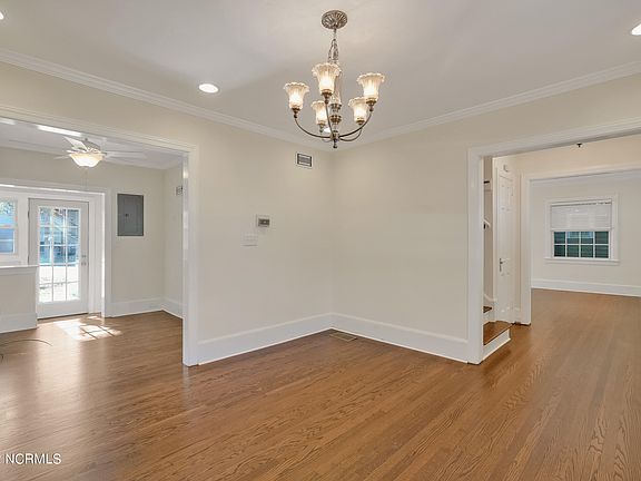 Experience old Wilmington's tradition in its most charming Forest Hills and South Oleander neighborhoods immersed in towering pines, flowering trees and colorful azaleas to find this enchanting Cape Cod 3 BDR, 2.5 BA. It's been renovated with lots of updates including newly restored luscious see the grain hardwood floors and smart looking tile in bathrooms. Main level includes white gourmet kitchen with GE Cafe stainless steel appliances, pantry, marble countertops, oversized island with black soapstone counter and prep sink equipped with stools for kitchen chats, gas range with griddle/grill, breakfast room/sitting area, powder room, mudroom with custom built-in shelves, pantry, formal dining room, Spacious family room with wood-burning fireplace and built-in shelves opens to a climate controlled sunroom with window sliders welcoming the morning sun and a view of backyard fun. Upstairs has Master BDR with walk-in closet, en-suite BA with unique double vanities, soothing tile and stone frameless shower and handsome plantation shutters. 2 BDR, one full BA, laundry room, two additional closets. Step out back to the large fenced-in private backyard great for kids and pets, detached two car garage with ~400 sqft of above storage, the perfect place for guest suite, private office or your own Airbnb offering alley access. Irrigation system in front and back yards on well. You'll be living in an area so popular for generations, little over 2 miles to the historic district, around the corner from shopping, Wholefoods and great eateries, and 7 miles to Wrightsville Beach. A special place to call home!