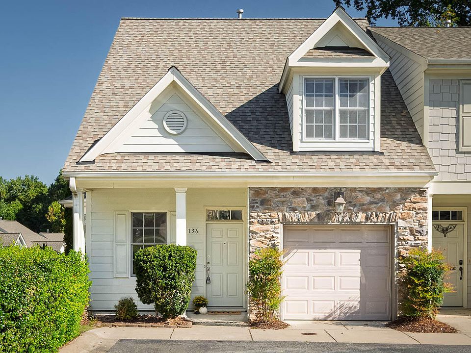 Beautiful updated 3-bedroom townhouse with TWO bonus areas & garage for under $380K! Write your own ticket on Pickett in this charming end-unit townhome, ideally situated between downtown Durham & Chapel Hill. Easy living with primary suite & laundry on main level, elegant living room graced by soaring ceilings and a cozy gas fireplace, and kitchen featuring large granite island. Front room with a bay window could serve as a formal dining room or office. Upstairs you'll find a spacious loft and 2 more bedrooms, plus a full bath. Brand new Stainmaster carpets, roof replaced in 2023, HVAC in 2017. Enjoy a cup of coffee out or dine alfresco on the oversized back patio, which overlooks a peaceful green expanse. Parking for 3 cars (1 in garage & 2 in driveway). HOA maintains the roof, gutters, trees & grass so you can just kick back and RELAX.