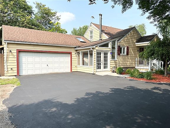 Welcome to this charming Cape Cod in the town of Greece & within Spencerport school district. This delightful home features three bedrooms, including two conveniently located on the first floor with a full bathroom boasting updated flooring and vanity. Entire 2nd-floor is dedicated to a spacious primary suite with an updated bathroom, complete with a jacuzzi-style tub and tiled surround, newer flooring, & modern vanity. The large great room and dining area, enhanced by a vaulted ceiling with skylight and sliding glass doors leading to a back deck, provide perfect space for relaxation or entertaining. A bonus entrance room with a wood-burning stove adds cozy charm. Nestled on an over 3/4 acre lot, the property includes a large fenced-in area, a barn with a 50-amp electric panel, & a private wood fire pit area with fruit-bearing bushes. Vinyl windows throughout, high-efficiency furnace, A/C, and hot water tank all just 5 years old, and a roof that’s only 7 years old. Freshly sealed driveway leads to a 2-car attached garage. Don’t miss the opportunity to call this beautiful property your new home! Open House 8/4 11am-12:30pm.