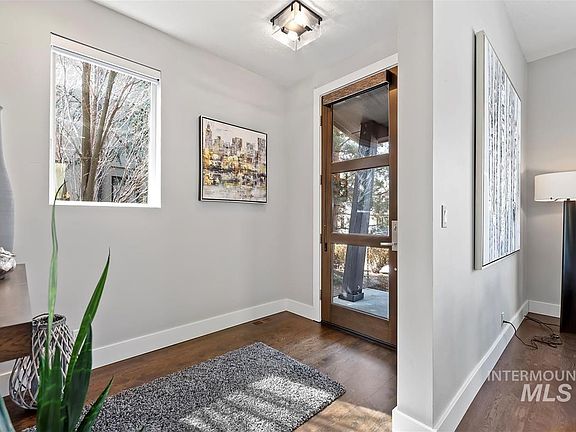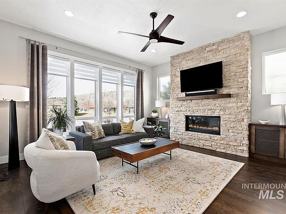 Immaculate home in NE Boise blends modern design w/easy living! Quality details include hand-troweled walls, upgraded lighting, custom blinds, built in speaker system & gorgeous refinished hardwoods. Spacious living room features cozy gas fireplace w/stone surround. Gourmet kitchen centers the home w/rich dark cabinetry, quartz counters, 6 burner range, double oven, island & walk in pantry. Dining area opens to covered side patio featuring xeriscape landscaping w/new lighting. Upstairs offers must have sep living room & luxurious primary suite w/views of the foothills, stylish feature wall & addtl flex space perfect for yoga/reading/nursery. Spa like bath w/sep vanities, tile shower, soaker tub & spacious closet. Dual zone HVAC for comfort. Oversized 2car garage w/extra bay, built-in storage & recently completed high end epoxy flooring. Outdoor living extends to front patio w/gas fire pit & views of foothills. At the hub of East Boise recreation, close to Boise River, Trails, Lucky Peak & more. Welcome Home!