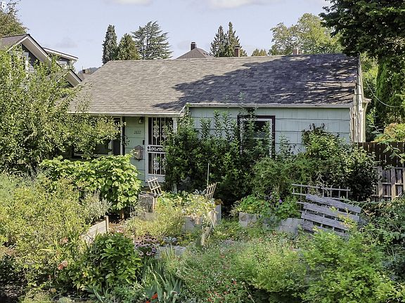 Tucked away in the heart of Southeast Portland, this home is a private garden retreat that’s been lovingly cared for over the past 15 years. Step outside to your own lush sanctuary—mature landscaping, a covered back patio, and thoughtfully designed spaces that invite both relaxation and entertaining. Inside, you’ll find hardwood floors, updated vinyl windows, and efficient mini-split heating and cooling for year-round comfort. A versatile pass-through office/bonus room connects to the second bedroom, giving you the flexibility of a true three-bedroom feel. Rare for this neighborhood, the home also offers off-street parking, plus a detached garage with attic storage and an attached tool shed. Just blocks from SE Division’s vibrant mix of shops, coffee houses, and restaurants, this home combines garden privacy with one of Portland’s most desirable and walkable locations. [Home Energy Score = 9. HES Report at https://rpt.greenbuildingregistry.com/hes/OR10241687]