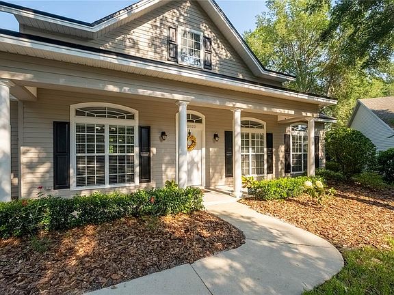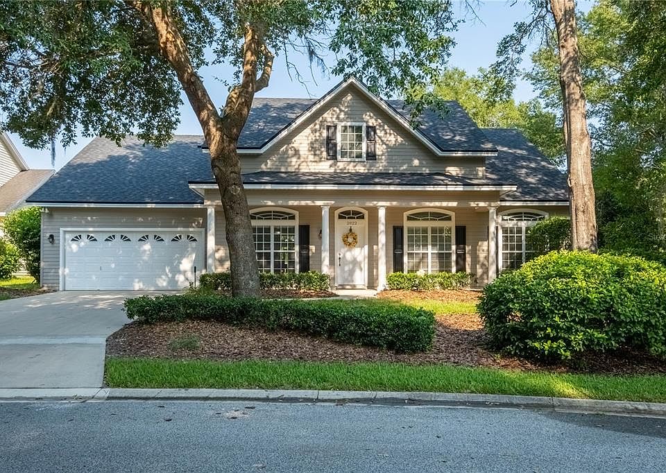 Exceptional opportunity in Haile Plantation, Bedford Square, is this beautiful 4 bedroom, 3 bath, home with a 3-way split floor plan. This home provides the space and privacy you are looking for and backs up to a greenbelt with no rear neighbors. Enjoy your private sunsets from your huge lanai. The flexible floor plan is designed for a future pool with access to a bath from the lanai. This Paul McArthur-built home boasts loads of windows and 10-foot ceilings throughout the entire home making it light and bright. The kitchen has wood cabinetry, stainless steel appliances, Gas range, granite countertops, and opens to the great room with a bar for entertaining. There is space nearby for informal dining as well. As you enter through the spacious foyer, there is a formal dining room on the left, To the right is a flex space for a formal living room/office/playroom with glass French doors for privacy. As you continue through the home it opens to a very large great room with a gas fireplace. Off the great room, there are two guest bedrooms and a spacious hall bath with double sinks. The 4th bedroom/in-law suite is separated from the great room with a door and has a bath that opens onto the lanai, a hall with a linen closet, and a really nice size bedroom. From the great room/kitchen area, there are French doors leading to the lanai and a huge privacy fenced backyard with a fantastic playset. The lanai has a gas stub-out for a future summer kitchen. The luxury owner's suite is light & bright with a wall of windows. The ensuite has a spa tub, a separate shower, a private commode, a vanity with dual sinks, and a very large walk-in closet. This home has a brand new roof (Dec. 2021), upgraded 16 SEER Smart thermostat HVAC, Smart devices like sprinkler control system, programmable switches for front outdoor lights, and garage door opener. Enjoy miles of walking and jogging trails, sidewalks, and beautiful trees throughout the neighborhood. You can walk to Lawton Chiles Elementary, Publix, restaurants, banking, etc. Haile Plantation offers membership to the Hawkstone Country Club with tennis, two pools, a restaurant, and a Gary Player golf course with a pro shop. There is a town center "The Village" with shops, pubs, restaurants, a Saturday farmer's market, and live entertainment. Just 2.5 miles to I-75 enables you to make a quick trip to the hospitals and the University. You will love living in Haile Plantation.
