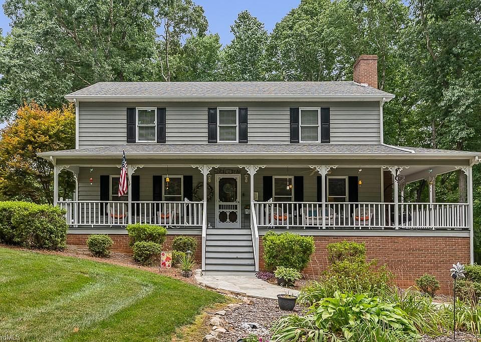 Open House CANCELLED. Beautiful 3 bedroom home on double lot in desirable Oak Hollow West! Wraparound porch perfect for rocking chairs and a porch swing, and a private maintenance-free Trex deck overlooking the large backyard make outdoor living a dream! Main floor features hardwoods throughout, with an open living and kitchen area, very large formal dining room, and a separate room currently used as a breakfast nook, but could easily be a sunroom. Warm, casual feel w/stairwell leading to bedrooms off of the kitchen, instead of foyer. The wide stairwell leads you to 3 spacious bedrooms, two full baths, including a totally renovated primary bathroom with massive custom tile shower. Loads of storage options w/ multiple closets on each floor, unfinished workshop area, and over 45 feet of dry storage space! Finished basement space makes an ideal game room, office, or den! Located on over 2.5 beautiful acres. Meticulously maintained. Updated tankless water heater, wired for 750w generator.
