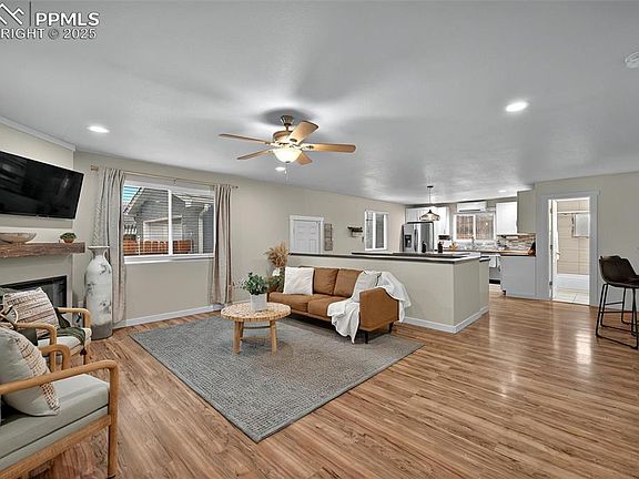 This beautifully updated home has been remodeled from the ground up and features newer PEX plumbing and fixtures, an upgraded 200-amp electrical panel, new flooring, carpet, doors, windows, roof, and fresh paint throughout. Top-of-the-line heating and cooling units have been installed in each room, offering individual climate control at the touch of a remote. The basement includes a third, non-conforming bedroom (no egress window), perfect for an office, guest space, or workout room. Enjoy energy-efficient LED lighting throughout the home and newer modern appliances in the kitchen. The oversized 1.5-car detached garage is insulated, drywalled, and includes a newer door, garage door opener, and convenient alley access. Tucked away on a low-traffic street, you're just minutes from Red Rocks—ideal for hiking and mountain biking—and within walking distance to Old Colorado City's restaurants, nightlife, schools, gas stations, convenience stores, liquor stores, and the popular Frontier Days events.