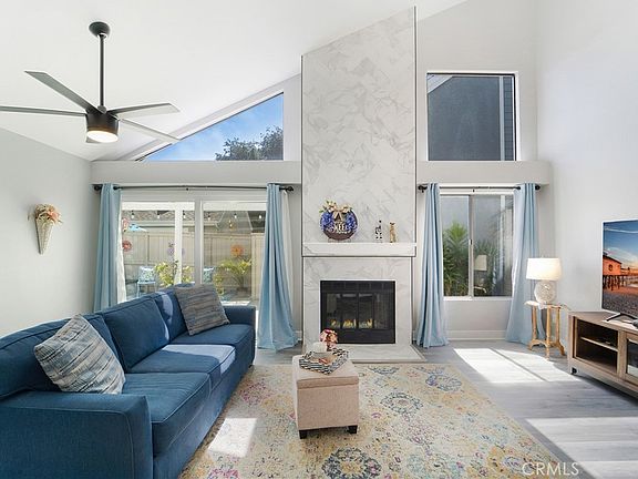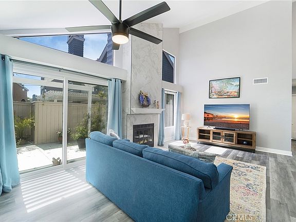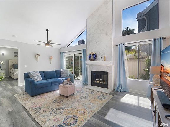 Location, location, location, just around the corner from Lake Mission Viejo and all of its amenities, sits this amazing home, with a first floor owner's suite AND a second bedroom and full bath!! This is a wonderful place to relax, play, or be able to go over and view the dazzling annual fireworks show! Just down the street from an expansive neighborhood park with playground and lovely trails to enjoy time outside. Beautiful, highly upgraded, and well situated, with a fully enclosed yard and a bubbling above ground spa to enjoy your nights under the stars! As you enter the formal living and dining rooms, you are greeted by the sweeping views of the marble covered fireplace from floor to ceiling! Natural light streams in through the many windows and sliding glass doors that lead out to the fully fenced, low maintenance yard. A light and bright kitchen nook surrounded by windows and plantation shutters compliments the upgraded kitchen perfectly! Quartz counters, upgraded glass tile backsplash, white cabinetry and s.s. appliances, make cooking and serving that much more fun! This floor plan is truly special, as it offers a downstairs owner's suite, as well as a second downstairs bedroom and full bathroom! A third full bedroom and bathroom are wonderfully situated upstairs, working well for guests or a home office! Newer flooring, modern light fixtures, decor, neutral paint, and dual paned sliding glass door, add to the long list of upgrades installed in the last few years. The spa, washer / dryer set and refrigerator, are offered with the property, so all you need to do is pack and move in! The long driveway welcomes you home, and the direct access two car garage allows for parking and storage. The location, amenities, lake membership, award winning schools and proximity to dining, shopping, trails and entertainment, add to this fabulous opportunity to own this fantastic home. Low taxes make this opportunity that much more affordable. In time for Summer, rush on over for your chance to be a part of the warm weather activities that surround this popular neighborhood!