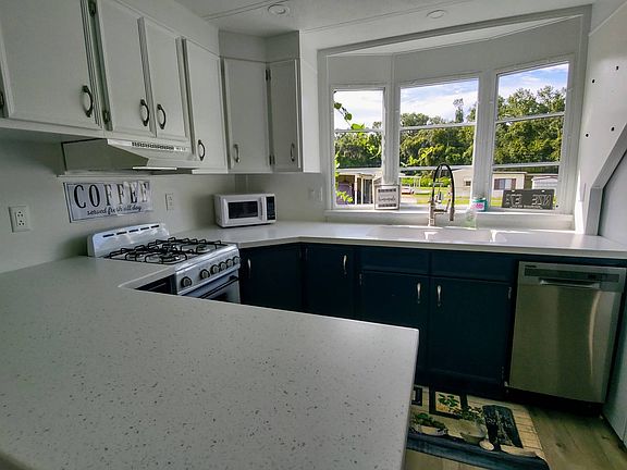 Open, bright, updated, and modern with a beach feel. Kitchen has new HIMAC counters with an inset sink. New waterproof flooring in home, new appliances, ceiling fans, freshly painted, new toilet, and updated bathtub. AC updated 2016. Home is an estimated 628 square feet with the Florida room. If you want to enjoy the weather you can sit on the patio or in the large screen room. Home has tons of parking and storage. Community is like no other with over 200 acres, 4 miles of walking, resort amenities, tons of fun activities, and much more. Call today for a private showing. LB10623