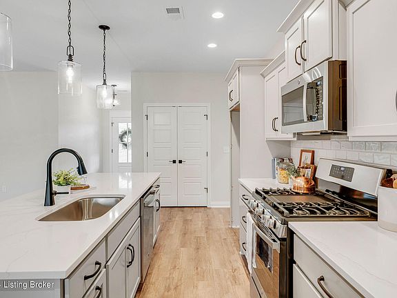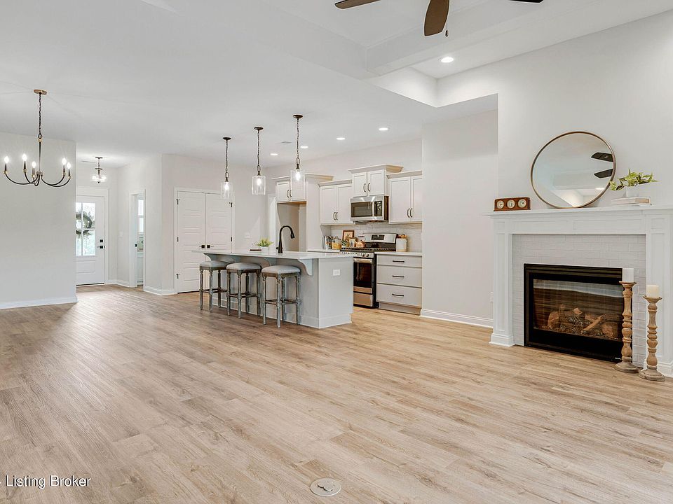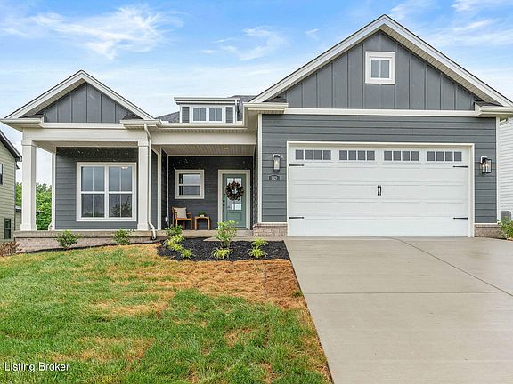 Move-in ready new construction in Buckner! Located close to I-71 access, Oldham County schools, the Country Club, local parks, YMCA and the new Kroger. This spacious ranch home offers over 1,800 sq ft of finished space, plus an attached 2 car garage. This is a spin off of a previous Homearama floor plan, so it's sure to please. The layout is an open floor plan with a split bedroom design. The main living areas include a foyer, office, kitchen and living room that flow together. The kitchen offers tons of cabinet space, pantry, and large island. You'll love the quartz counters & gas range. The living room has a gas fireplace and sliding door onto the back patio. The pocket office has a built-in desk. The attached garage walks into a mud room, which flows into the laundry. The primary suite is situated on the right side of the home. The primary bedroom has a vaulted ceiling w/ tons of natural light. You'll love the large tiled shower in the primary bath, plus the double vanity. The primary closet has access to both the laundry and primary bath. On the other side of the home, there are 2 good size bedrooms and a full bath. Schedule a time to tour today!