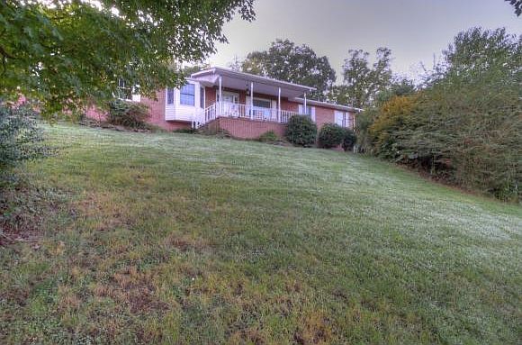 This spacious all one-level brick home is nestled on a large lot that shares both pasture and mountain views. This home features a nice living room with hardwood floors that opens to an updated kitchen with white cabinetry, stainless steel appliances, and updated counter-tops. The formal dining room is quite large with a bay window providing ample natural light. The great room features a brick fireplace and has a patio door leading to a beautiful private covered back porch to enjoy private secluded backyard bordering neighboring woods. The master bedroom provides a cozy retreat and features a double closet and has an en-suite private bath. The additional two bedrooms are quite large and each feature oversized closets and share a large, full hallway bath with double vanities and ceramic tile flooring. Additionally, this home features a large basement/den/game-room area with ample storage space. This home features a two-car main-level garage and pull-down attic. This home has been tastefully remodeled and features warm and inviting colors with numerous updates. You will enjoy spending time relaxing on the front flagstone porch as you watch the horses graze at sunset. Have no fear of mowing if yard work is not your specialty, Recovery Soldiers Ministry will mow the yard for the bargain price of only $40.00 per month. This home has been meticulously cared for.