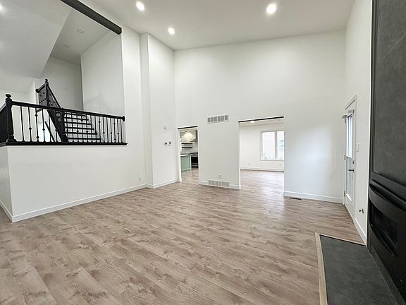 RARE FIND! This attached home in Cobblestone Estates has been fully updated and offers an impressive amount of space with 4 bedrooms and 4 full bathrooms. The extra-large modern kitchen stands out with abundant cabinetry, subway tile, gorgeous counters, an enormous island, and a spacious dining area framed by oversized windows that fill the room with natural light plus the owners added extensive additional lighting throughout. The kitchen opens seamlessly to the living room, where soaring two-story ceilings, a striking fireplace focal point, and warm wood accents on the staircase and ceiling beam create a stunning yet inviting atmosphere. The main floor also includes a full bathroom and convenient laundry room. The full finished basement provides exceptional flexibility with a rec room, a 4th bedroom with egress window, a full bathroom, and multiple additional rooms perfect for a den, office, playroom, home gym, or storage. Upstairs, you'll find a beautiful primary suite with its own full bath and two additional guest bedrooms sharing another full bathroom. Located just minutes from schools, shopping, restaurants, Rotary Park, the YMCA, and the bike trail this home has it all. Small pet welcome with an additional $50 per month.