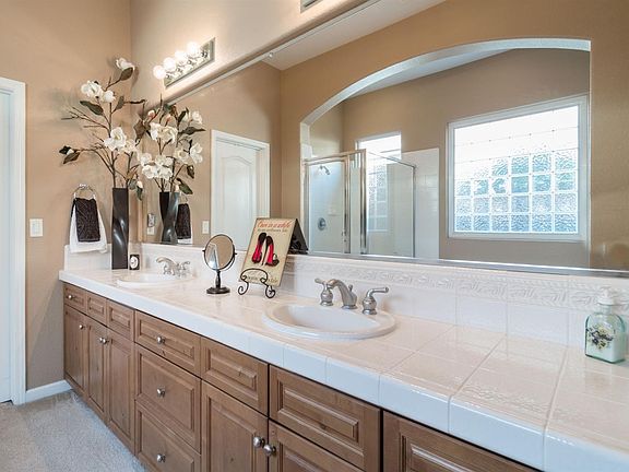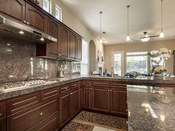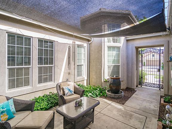 Stunning RARE GEM in one of the most desirable neighborhoods in Clovis! You will love this home the minute you walk through the front gate into large courtyard living space with water fountain and plenty of room to relax. Through the front doors of this open concept living home and wow!: you will feel the abundance of space to entertain many family & friends and features a wall of natural light flowing through and inviting nature indoors with so many windows looking out to beautiful shaded backyard with mature landscaping and large covered patio. The great room area, along with family room (fireplace) kitchen/dining features tons of granite countertops for the cook in the family, large island with built-in wine fridge, bar seating area for those special gatherings, and beautiful arched doorway & shelf architectural elements a custom home would have. Master Suite has French doors to private patio; spa tub/separate shower in xlarge bath-all of this in award-winning Clovis schools!