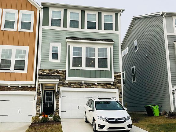 End unit townhome backed with trees. This like new townhouse has the perfect spaces for working or schooling from home. Spacious bedroom w/full bath& patio on first floor behind 2 car garage. Kitchen w/linen cabinets & granite countertops- lots of counter space on perimeter and center island. Private dining area right next to the deck. Owner's bedroom has private en-suite with tiled shower and lots of storage space. 2 additional bedrooms, hall bath, & spacious laundry complete 3rd floor. Refrigerator, washer and dryer are provided by the landlord. Top rated school district: Apex Friendship elementary, middle and high schools. Renters pay for utilities. Landlords pay for the HOA. HOA takes care of lawn maintenance and landscaping. Refrigerator, washer and dryer are provided by the landlord. Blinds installed. Pet friendly with deposit and monthly fee.