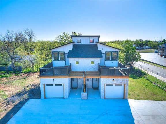 FINAL PRICE REDUCTION BEFORE OWNER TAKES OFF MARKET AND PLACES TENANTS. Attention investors or house hackers! BRAND NEW modern duplex ready for tenants, or live in one side and rent out the other! So many features here it's almost too much to list. This duplex comes with the land and approved plans with the city to build TWO more, WOW. Sewer lines already stubbed out for the next 2 will save you thousands. This duplex was built with 2x6 framing, foam insulation, ALL electric, trex balconies that will last and not discolor for years to come, gorgeous eye catching cedar pergola, alarm systems and garage door lifts. The interior boasts 9ft ceilings, 100% waterproof luxury vinyl plank flooring, custom cabinets with soft close, built in storage, TONS of closets and modern light fixtures. Primary bedroom has large custom walk in closet, double vanities, shower niche with tile to the ceiling and private deck to enjoy those Oklahoma sunsets. This layout was designed for tenant longevity with 2 great sized bedrooms, 2 and a half baths, interior washer/dryer room and spacious layout. Rents should go for $1800+/month per unit.