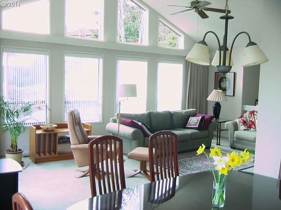 Sunny contemporary home w/open floorplan and lots of windows & skylights. Vaulted ceiling in LR & formal DR give feeling of spaciousness. Glass door off fam rm lead to deck, overlooking serene, private backyard w/garden area, trees & berries. Wonderful home for entertaining. Great storage, including large storage room off garage. Newer gas furnace, water heater & AC.Convenient location near PCC, Lewis & Clark, and New Seasons.