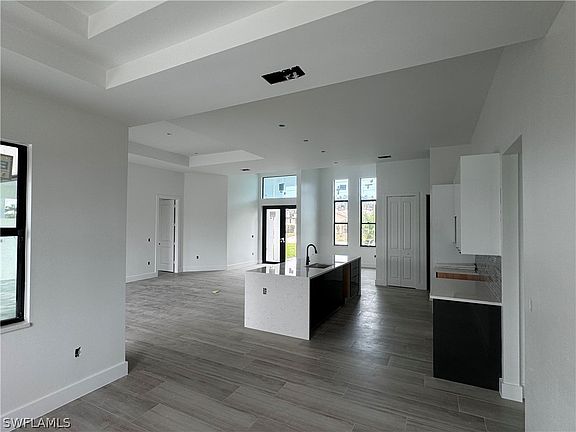 Centrally located in Cape Coral, this Gulf access home with a western exposure boasts 2208 sqft. of living space, four bedrooms, and three bathrooms. Perfect for enjoying the stunning South West Florida sunsets, the home features a large deck with a pool, spa, and beach deck. The modern kitchen comes with a waterfall quartz countertop, stainless steel appliances, and custom high-gloss European cabinets, while the entire house is tiled with custom porcelain planks and features many unique details. An insulated two-car garage and hurricane impact windows provide added convenience and safety. Don't miss out on seeing this beautiful home, built to the Paradise II model.