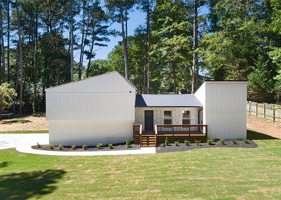 You will not want to miss this beautiful renovation located in East Cobb. This home features all new windows, doors, roof, siding, HVAC, and all new interior finishes! The all new kitchen boasts a large island, all new cabinetry, granite, and stainless appliances. It opens up into a beautiful open concept living room with tall ceilings, recessed LED lighting, and a modern fireplace that adds ambiance. The owners suite features his and hers closets, luxury vinyl plank flooring, and large walk-in shower. There are two bright guests rooms that share a large bath with designer tile flooring, double vanity, and gold fixtures. You will enjoy the added benefit of a lovely covered rear porch with tongue and groove ceilings looking out in to the large flat yard. All of this is conveniently located in the heart of East Cobb in the Pope school district.