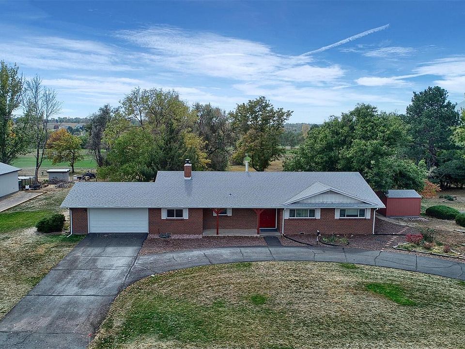 Unique mid-century ranch with great bones and tons of potential. Quiet older neighbor with large half acre+ lots. Backing Valley Hi Golf Course with no fence, most rooms enjoy gorgeous unobstructed golf course views framed by Front Range mountains. Rare true ranch floor plan with no basement, perfect main level only for retirees or limited accessibility. Circular driveway, 2 car attached garage, and included TuffShed provides numerous parking/storage options. Walking through the front door, you are immediately drawn to the sweeping views with floor to ceiling windows and sliding doors in both the living room and family room. Efficient galley kitchen is open to family room via breakfast bar and shares the cozy wood-burning fireplace. Incredible beamed ceilings in the family room add great character. Informal dining area leads to the open laundry space with utility sink and cabinets. Convenient half bath is an exceptional addition in mid-century floor plan. Office addition can be used as a 3rd bedroom and just needs a closet. Master suite is oversized with built-in storage, 2 closets, vanity/dressing area, and attached 3/4 bath. Sunny second bedroom and full bath. Charming formal dining room is also the ideal placement for a home office if preferred, with built-in storage or closet. Large covered patio with gas line ensures plenty of space to enjoy the backyard and views year round. Mature trees provide privacy while simply framing the incredible beauty.