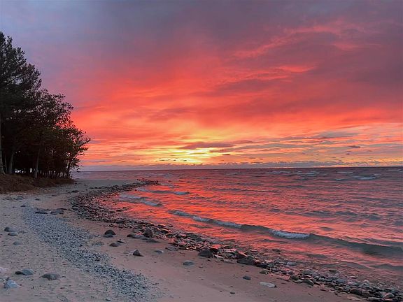 This year round home is situated on the serene and picturesque shores of beautiful Lake Michigan. This newly constructed home boasts over 138' of waterfront with panoramic views of the Lake, a walk out basement and is NOT part of any association. The interior of this home features Hydronic flooring, ICF insulated basement, ERV for air exchange, Pella windows and more. Upon entering the home you are greeted with a spacious grand room with cathedral ceilings and access to a 2nd story balcony that offers spectacular views of the lake and sandy beach. Throughout the home you will appreciate the intentional details of wood accents that were milled from the property itself. This property features a new 2 story custom built artist workshop.. This home is complete with a dog shower & condo for your canine companion. Call for showings on this year round Northern Michigan waterfront home.