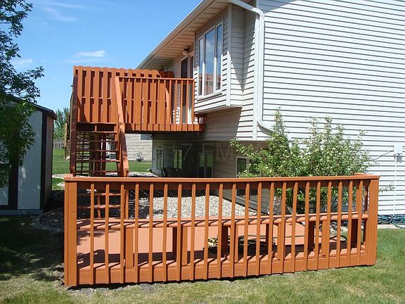 Great south Fargo location. Steel siding. Two tiered deck. Shed and tons of trees in backyard. Large master walk-in closet. Washer and dryer to be exchanged