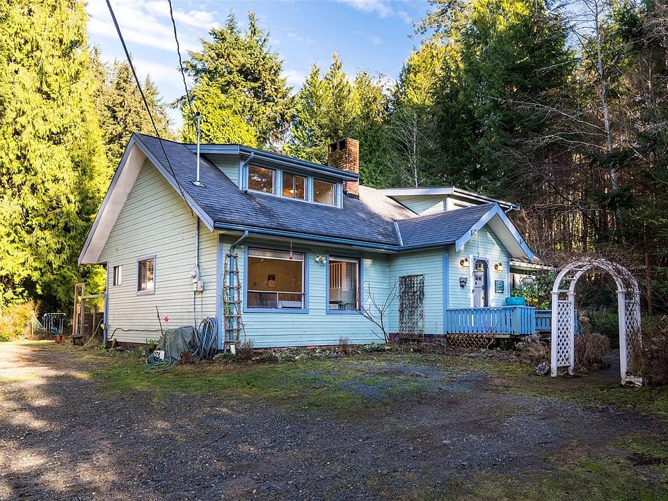 Motivated Sellers-Price Reduction! 20 Minutes west of Sooke siting on a pretty & private lot! This 2027 sq ft 3 bedroom 2 bath home needs paint & flooring-windows are original. Very unique home on a magical .97 of an acre-just waiting for some cosmetic updates. Kitchen has higher end appliances...many rooms w/ custom blinds. Main level has living rm w/ wood fireplace, dining area, nice sized eat in kitchen, large utility/laundry area (perfect for pets, crafts or a place to store your canning), 4 piece bath & 1 bedroom-great for guests. Upstairs are 2 bedrooms plus family/loft area. Primary has sliders to deck, ensuite w/ jetted (8) tub & a woodburning fireplace. The yard was once very loved. Fenced veggie garden, greenhouse, dog run & seasonal stream-very private. Bring your sweat equity & this country family home could be perfect for you! Easy walk to French Beach & Stoked Pizza. Shirley Delicious is a 5 minute drive away. Many provincial beaches, surfing & trails close by.